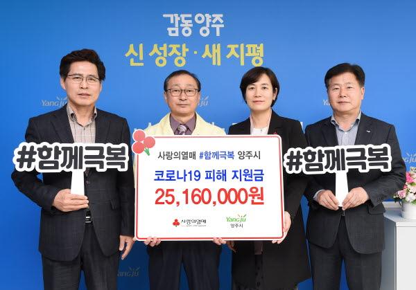 양주시(시장 이성호)는 지난 23일 경기북부 사랑의열매(본부장 강주현)에서 양주시청을 찾아 코로나19로 위기에 처한 저소득층을 위해 써달라며 성금 2,500만원을 기부했다고 밝혔다.