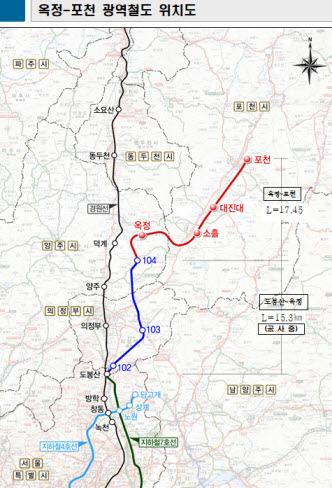 총연장 17.45㎞의 옥정~포천선은 지난해 12월 2공구 착공에 들어간 도봉산~옥정 연결사업 종점에서 옥정신도시를 통과해 포천까지 연장하는 사업이다.