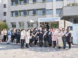 이날 아침, 이화-강동 여성아카데미 회원들은 강동구청 2청사 앞에 ‘커피차’를 준비하고 출근하는 직원들에게 따뜻한 커피, 도덧, 떡 등 간식과 함께 손글씨로 쓴 응원메시지 카드를 전달했다.