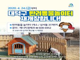 대전 대덕구(구청장 박정현)가 코로나19 확산 방지를 위해 지난 2월부터 임시 휴장했던 반려동물 놀이터를 재개장했다.