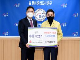 대전 중구(구청장 박용갑)는 청사 구민사랑방에서 대전남부교회(담임목사 류명렬)와 이웃돕기 성금 기탁식을 가졌다고 26일 밝혔다.