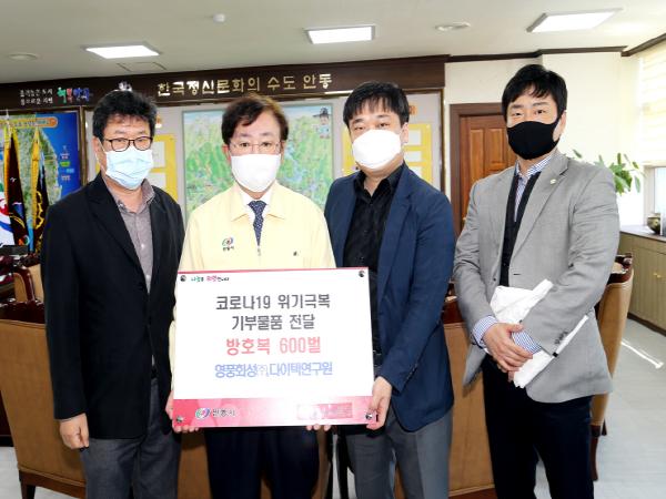 기능성 섬유 전문기업 영풍화성(주)와 섬유 소재 연구기관인 다이텍연구원은 코로나19 전염 매개체인 비말을 차단하는 보호복을 개발해 4월 24일 600벌을 안동시청에 기부했다.