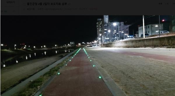 전찬걸 군수는 “이번 사업으로 코로나19 사태로 국가적인 위기상황에서 사회적 거리두기 운동에 참여하며 힘든 삶을 견디고 있는 주민들이 밤 산책로를 걸으며 잠시나마 여가 활동을 가지는데 도움이 되기를 바란다”고 말했다.