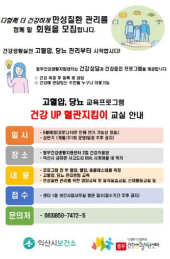 문의사항은 익산시 보건소 동부건강생활지원센터 ☎ 063) 859 ? 7472~5 로 하면된다.