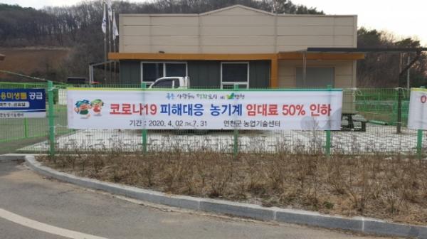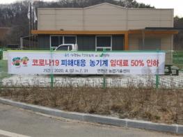 연천군 농업기술센터(소장 변상수)는 농업기계임대사업소 임대현장에서 “농기계 임대료 50% 인하 지원으로 코로나19로 인한 피해 농업인에게 조금이나마 도움이 되었으면 한다”고 전했다.