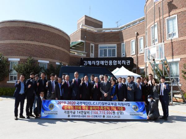국제라이온스협회 356-c(전북)지구는 김제시장애인종합복지관 외에도 쏠라티 특장차 1대(임실군)와 이동세탁차량(정읍) 1대를 기증하였으며 전북지구 106개 단위클럽에서 전북지역 14개 시군에 매년 약 40억원 상당의 무료급식봉사, 장학사업, 각종 재난재해 구호사업 등 다양한 봉사활동을 진행하고 있다.