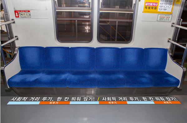 「좌석 한 칸 띄워 앉기」란 기존 6명이 앉는 전동차 좌석에 3명만 앉도록 하겠다는 것이다. 이를 위해 공사는 시민들이 알기 쉽도록 전동차 바닥에 「좌석 한 칸 띄워 앉기」 스티커를 부착할 방침이다. 스티커의 내용을 참고해 시민들께서도 사회적 거리두기에 적극 동참해 주시길 바란다.