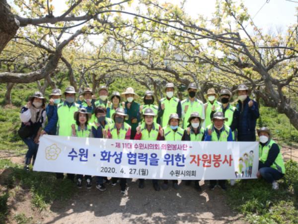 이날 방문은 인근지역 과수농가가 배꽃 개화기를 맞이했으나 코로나19 확산 저지를 위한 사회적 거리운동으로 인력수급에 어려움을 겪고 있다는 소식을 듣고 수원시의회 의원봉사단과 직원들이 나서 봄철 일손돕기를 하기 위해 이루어졌다.