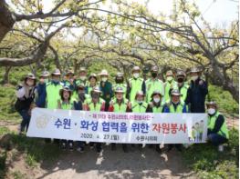 수원시의회(의장 조명자) 의원봉사단은 27일 오후 화성시에 위치한 과수농가를 찾아 수원·화성 인근 지역간 우애를 다지기 위한 일손돕기 봉사활동을 실시했다고 밝혔다.