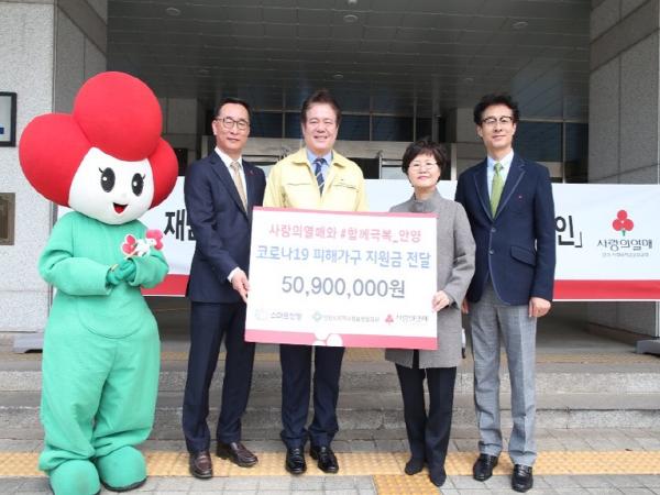 특히 캠페인과 아울러 경기도 사회복지공동모금회에서 최대호 안양시장에게 코로나19 피해가구 지원금으로 5천9십만 원을 전달하기도 했다.