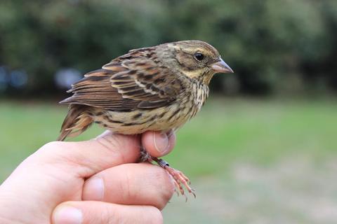 국립공원공단 연구진은 올해 3월 3일 한려해상국립공원 통영 소매물도에서 가락지가 부착된 섬촉새 1마리를 포획했다.