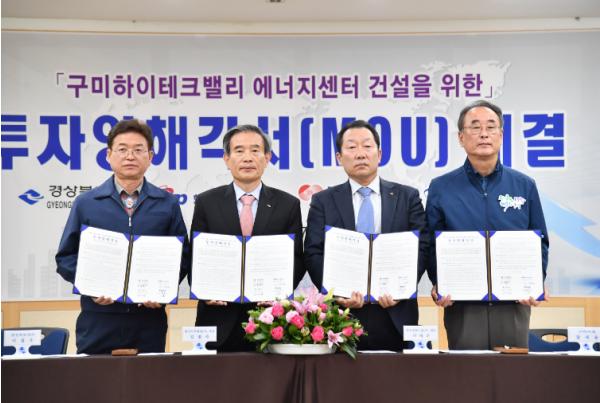 경상북도는 구미시와 27일 구미시청에서 이철우 경북도지사, 장세용 구미시장, 김병숙 한국서부발전(주) 사장, 이배수 한국전력기술(주) 사장, 지역 도의원 및 시의원 등이 참석한 가운데「구미 하이테크밸리 에너지 센터」조성 MOU를 체결했다.