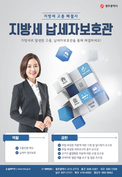 광주광역시는 지방세 관련 고충민원 해결과 납세자 권익보호를 강화하기위한 ‘납세자보호관 제도’를 운영 중에 있다.