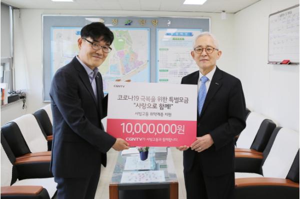 김승규 서빙고동장은 "어려운 시기에 큰 도움을 주신 CGNTV 측에 감사하다"며 "기부받은 돈은 서빙고동 취약계층 지원을 위해 사용할 것"이라고 말했다.