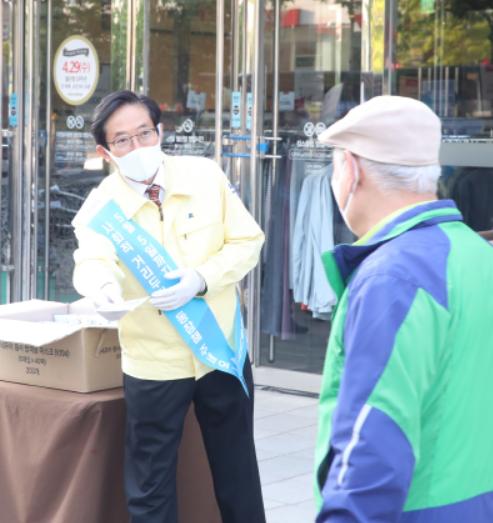 박창화 광명시 부시장과 관계 부서 직원 20여 명은 지하철 7호선 철산역 앞에서 출근길 시민에게 마스크 2000매를 배포하며 “사회적 거리두기가 5월5일까지인 만큼 방심해서는 안 된다”고 당부했다.