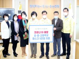 마스크는 초등학교 25개교, 중학교 12개교, 고등학교 11개교 등 학생 36,337명과 교직원 2,699명에게 전달될 계획이다.