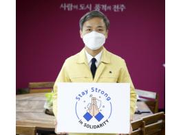 김승수 전주시장이 코로나19로 인해 지치지 말고 굳은 연대로 굳건히 이겨내자는 SNS(쇼셜네트워크) 릴레이 캠페인에 동참했다.