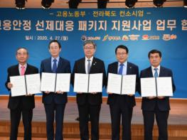 28일 완주군은 지난 27일 전북테크노파크에서 고용노동부 장관, 전라북도지사, 익산시장, 김제시장 등 사업 수행기관의 장 등 30여명이 참석한 가운데 ‘고용안정 선제대응 패키지사업’ 업무협약식을 체결했다.