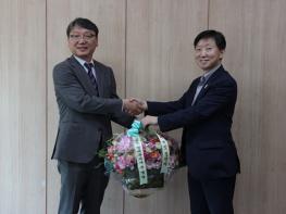 우병렬 경제부지사, 홍정섭 원주지방환경청장에 꽃바구니 전달