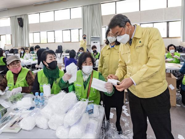 이번에 전달되는 마스크는 식약처 인증 KF94 마스크 및 안심 면 마스크로 1인당 6매씩 지원된다. 면 마스크는 봉제업체 경영난 해소와 마스크 부족현상을 해결하기 위해 지역 내 봉제업체와 함께 협력하여 제작해 의미가 깊다.