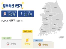 현재 4월 28일 기준 서초구는 243개의 지방자치단체 중 전국 최다 건수의 우수 혁신 사례가 인증 및 게시되어 2위와 압도적인 차이로 ‘금메달’을 획득했다.