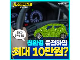 운전자가 주행거리를 단축하거나, 급가속·급제동을 하지 않고 친환경 운전을 했을 경우, 실적에 따라 탄소포인트를 지급하는 자동차 탄소포인트제도. 올해는 참여자가 참여 시점과 종료 후의 차량 계기판 사진을 전송하면 과거 주행거리와 비교해 감축 실적을 산정하는 사진 방식으로 진행하며, 실적에 따라 최대 10만 원의 탄소포인트를 받을 수 있습니다.