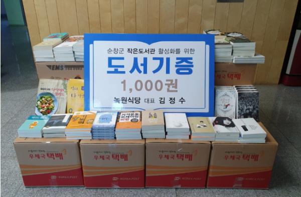 전북 순창군에 위치한 녹원식당(대표 김정수)이 지난달 29일 아동, 소설, 교양 분야의 도서 1000권(약 1500만원 상당)을 기증했다.