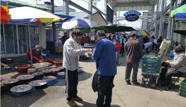 이번 캠페인은 2개월 여만에 재개장된 공설시장을 찾는 이용객 및 상인들을 대상으로 코로나19에 대한 경각심을 환기시키기 위하여 실시되었다.