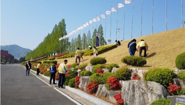 김천시(시장 김충섭) 스포츠산업과 및 원도심재생과 직원 60여명은 지난 4.29(수)일 김천종합스포츠타운 대청결 운동을 실시했다.