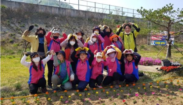 이날 행사는 회원들 40여명이 참여해 형형색색의 베고니아, 메리골드, 페츄니아 6,000본을 상부삼거리, 119안전센터 맞은편, 면사무소 인근 및 대로변에 식재하였고, 이어서 코로나-19 6차 방역까지 실시하였다.