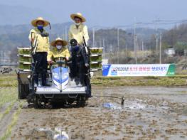 경북 영주시는 지난 29일 안정면 오계리 황순섭 농가의 논에서 8.15 광복쌀 첫 모내기를 실시했다고 밝혔다.