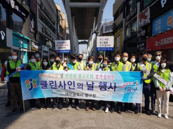 대전 중구(구청장 박용갑)는 29일 중앙로 우리들공원과 으능정이거리에서 민?관 합동불법 광고물 근절과 건전한 광고문화 정착을 위한 ‘Clean ? sign’의 날 행사를 진행했다.