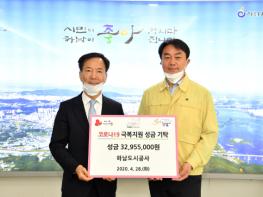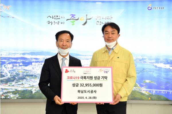 하남도시공사(사장 김경수)가 지난 28일‘코로나19’극복지원을 위한 성금 3천295만5천원을 하남시에 전달했다.