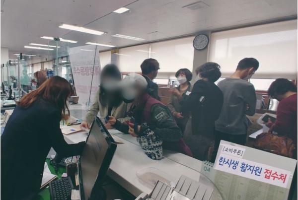 김포시의 한시생활지원 선불카드 배부가 순조롭게 진행되고 있다.