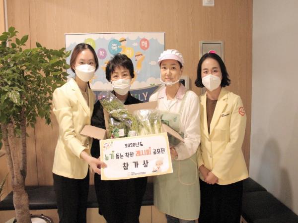 이번 공모전에는 총 20개소 어린이급식소가 참가하였으며, 간식류 우수 레시피는 감자샐러드피자(민락사랑어린이집), 주찬 우수 레시피는 돼지고기연근전(도담아이어린이집)이다. 부찬은 점수 미달로 선정하지 않았으며, 우수 레시피는 상장과 함께 하반기 센터 식단에 반영될 예정이다.