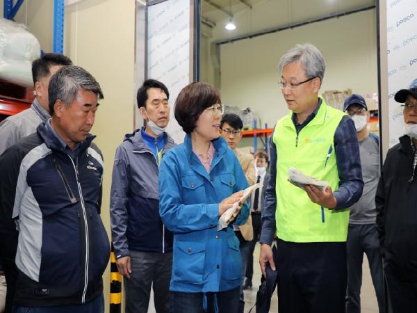김보라 안성시장이 지난 30일, 휴일 반납하고 농촌일손돕기에 나선 농협경제지주 임직원들을 찾아가 격려했다.