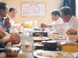강민석 대변인은 "징검다리 연휴를 맞아, 방역은 철저히 하되, 거리두기를 하면 외식은 할 수 있다는 것을 보여주기 위해 식사를 함께 한 것"이라고 설명했다.
