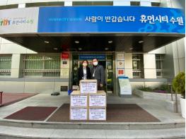 수원시자원봉사센터와 수원상공회의소는 일본 현지 기업에 취업한 수원 청년 110여 명에게 면마스크 1000장과 김 600개 등 후원 물품을 보냈다.