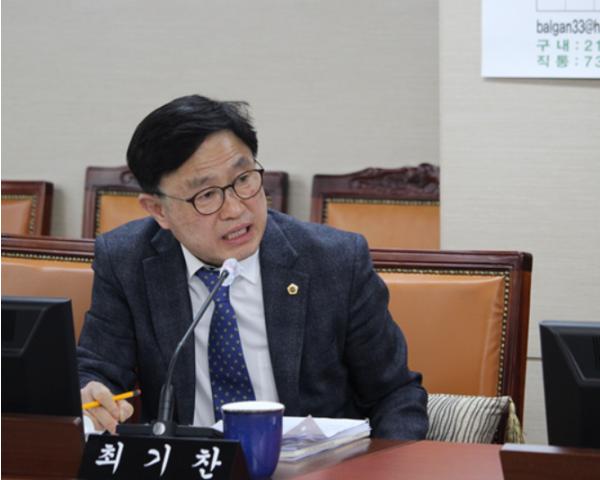서울특별시의회 최기찬 의원(더불어민주당, 금천구 제2선거구)은 지난 제293회 임시회 기간 동안 서울시교육청을 대상으로 한 질의에서 코로나19로 인해 2020년 해빙기 정기점검이 늦어지고 학교 시설공사가 지연되고 있어 학교 시설물 점검과 안전관리를 더욱 철저히 해야 한다고 밝혔다.