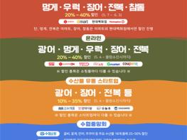 먼저, ▲ 롯데마트, 이마트, 홈플러스, 현대백화점 등 대형마트·백화점에서는 우럭, 장어, 전복 등을 판매하고, ▲공영쇼핑, 롯데온, 11번가, 우체국쇼핑, G마켓, 쿠팡 등에서도 광어, 멍게, 우럭 등을 각 온라인 쇼핑몰에서 판매할 예정이다. ▲삼삼해물, 얌테이블, 오늘회, 인어교주해적단 등 수산 창업기업은 각 누리집에서 전복, 가자미, 숭어 등을 판매하며, ▲수협중앙회는 수협쇼핑 누리집을 통해 굴비, 꽃게 등 수산물 18종을 판매한다. ▲전라남도, 충청남도, 통영시 등 지자체도 각 지역 장터, 백화점, 쇼핑몰 등을 통해 지역특산 수산물을 판매할 예정이다.