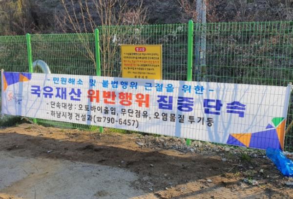 하남시는 하천구역 등 국유재산에 대한 불법 경작, 오토바이 진입, 하천수 불법 취수 등에 따른 민원이 지속적으로 증가하고 있어 집중 단속을 통해 민원해소는 물로 국유재산 불법행위 근절을 위해 적극 나서기로 했다.