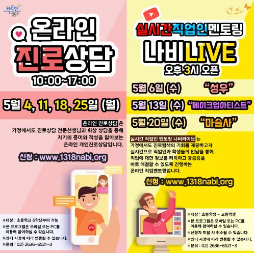 이에 구는 청소년들의 자기주도적 적성 탐색을 돕고자 온라인 진로 상담 및 온라인 직업 멘토링을 개최한다.