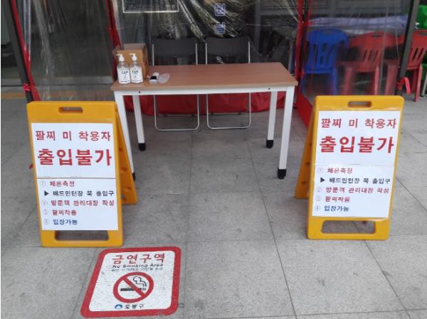 또한 주민들이 실외 체육관 이용 시 생활방역 준수를 위한 현수막을 게시했으며, 시설별 출입문에 방문객의 체온을 측정하기 위해 출입구 앞에 체온측정 관리소(천막)를 설치했다. 체온측정 방문객에 한해 체온측정여부 확인 종이 팔찌를 착용할 예정이며, 착용자에 한해 입장이 가능하다. 아울러 구는 각 시설별 방문객을 관리대장으로 관리하며, 1일 2회 시설물 소독 및 환기를 시킬 예정이다.
