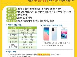 장성군은 오는 8일까지 모바일 헬스케어 사업 참여자 60명을 선착순으로 모집한다. 참여 대상은 장성군이 거주지나 근무소재지이고, 혈압·공복혈당·허리둘레·중성지방·HDL-콜레스테롤 중 건강위험요인을 1개 이상 보유한 군민으로, 관련 질환자나 약물 복용자는 제외된다.