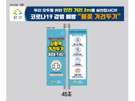 구는 4월 3일(금) 금천구청역, 독산역, 가산디지털단지역 입구 등에 ‘봄꽃 거리 두기’ 현수막을 내걸고, 안양천, 벚꽃로, 금나래중앙공원, 감로천생태공원, 금천체육공원 등 주요 산책로에 강도 높은 사회적 거리 두기 동참을 위한 가로등 배너기 105개를 게첨했다.