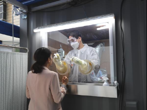 이번에 도입한 워킹 스루 방식은 환자가 실내로 들어올 필요가 없어져 의료진이 매번 방호복을 갈아입거나 시설물을 소독할 필요가 없게 됐다.