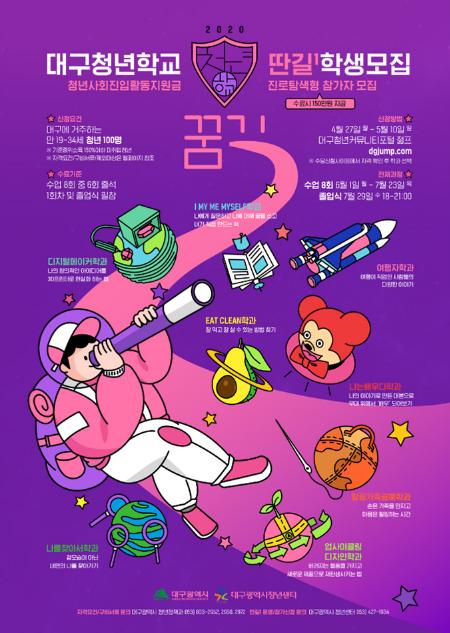 대구시는 진로를 고민 중인 지역 청년들(만19세~34세)에게 효과적인 취·창업준비와 사회활동 참여 의지를 높일 수 있는 프로그램 활동을 지원하기 위해 대구시 청년센터에서 주관하는 ‘대구청년학교 딴길’과 ㈜일로이룸에서 주관하는 ‘청년 내일(My job& Tomorrow)학교’에 참여할 청년들을 각각 5월 10일과 5월 22일까지 모집한다.