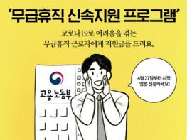 무급휴직 신속지원으로 당장 생계 어려움을 겪는 근로자를 돕고 대규모 고용안정 패키지를 통해 코로나19로 인한 고용충격도 함께 줄여가겠습니다!