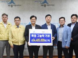시는 지난 6일 시청 접견실에서 이춘희 시장과 강영준 ㈜이마트에브리데이 상무 등 양 기관·기업 관계자 10여 명이 참석한 가운데 폭염 그늘막 전달식을 개최했다고 밝혔다.