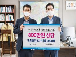 이정훈 강동구청장이 지난 2일(목) 오후 구청장 집무실에서 관내 소재 기업인 ㈜다름플러스로부터 취약계층 지원 물품을 기부 받았다. 외식전문 프랜차이즈 기업인 ‘이차돌’을 창업·운영하는 ㈜다름플러스는 코로나19로 어려움을 겪는 취약계층 이웃들에게 전해 달라며 진공 포장된 도가니탕 2,000팩을 기부했고, 앞으로도 지역 나눔 활동에 참여할 뜻을 비췄다.